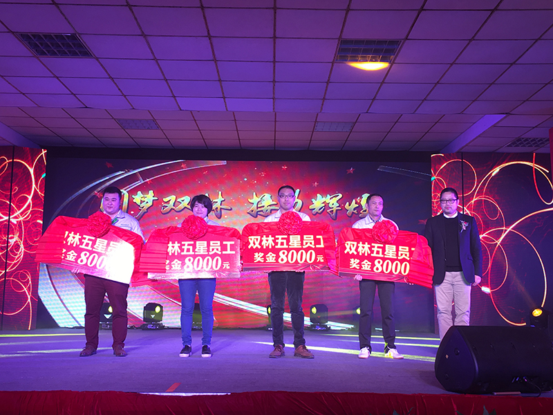 12月30日晚上,双林公司迎来了翘盼已久的2015年年度表彰大会暨2016年“圆梦双林,接力辉煌”元旦文艺晚会,一千多名员工欢聚在灯火辉煌的多功能厅,迎接着即将到来的欢庆盛宴。